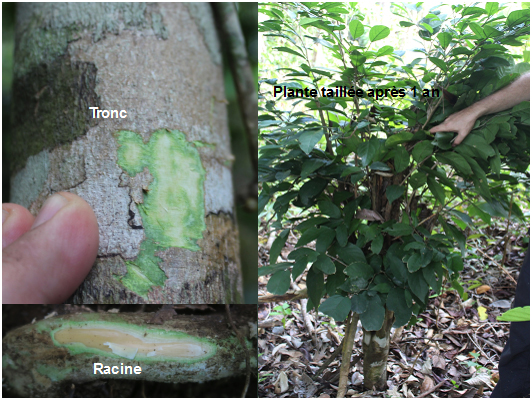 La prochaine étape, multiplier les espèces (plants) et installer des parcelles. Constuire des successions de plantes d’abord pionnières puis forestières qui permettront d’exploiter le Ni des délaissés miniers (récupération de quelques tonnes de Ni par hectare !) et de préparer à l’installation à plus long terme d’une forêt secondaire plus riche en espèces. Ce procédé porte le nom d’Agromine*.